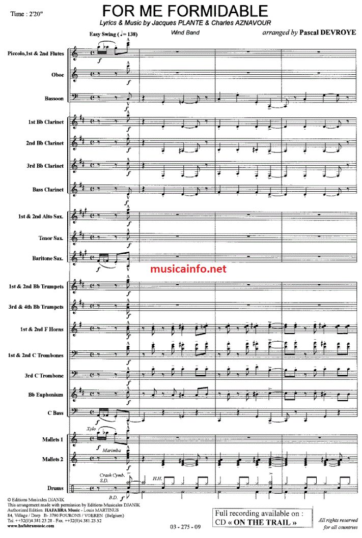 For me formidable - hier klicken For me formidable (Blasorchester), Partitur 17,60