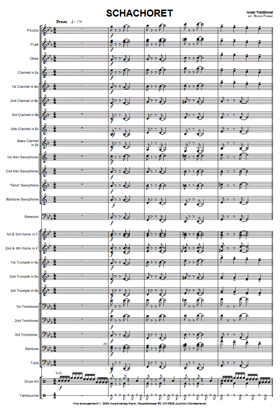 Schachoret (Lively Folk Dance from Israel) - hier klicken Schachoret (Lively Folk Dance from Israel) (Blasorchester), Partitur und Stimmen 188,75