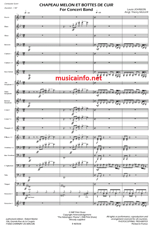 Mit Schirm, Charme und Melone (The Avengers) - hier klicken Mit Schirm, Charme und Melone (The Avengers) (Blasorchester), Partitur