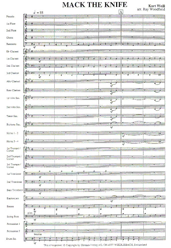 Mack the Knife (from 'Dreigroschenoper') - hier klicken Mack the Knife (from 'Dreigroschenoper') (Blasorchester), Partitur und Stimmen 131,80
