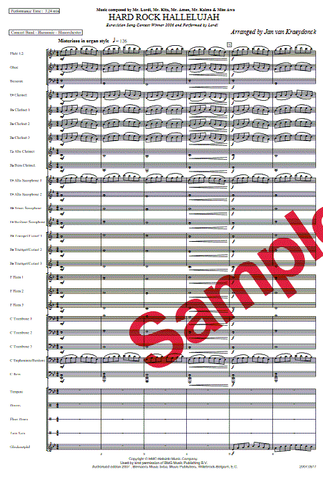Hard Rock Hallelujah - hier klicken Hard Rock Hallelujah (Blasorchester), Partitur und Stimmen