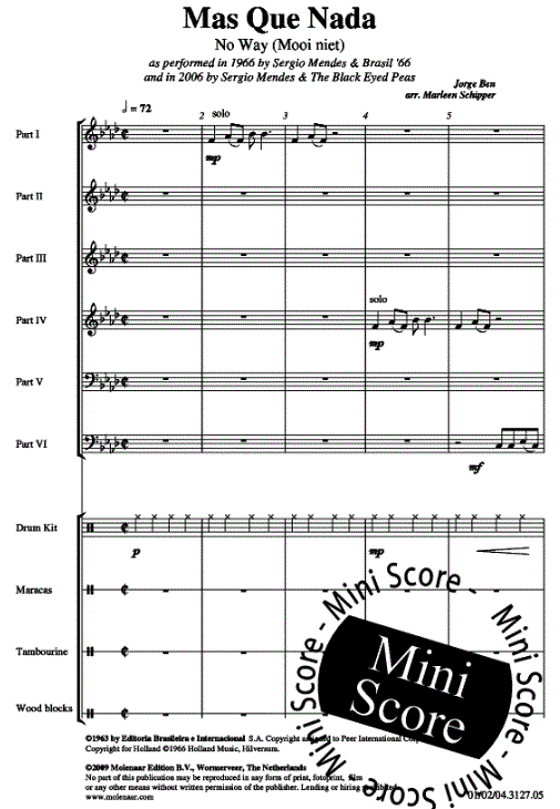 Mas Que Nada - hier klicken Mas Que Nada (Blasorchester; Schul- und Jugendorchester; variable Besetzung), Partitur und Stimmen