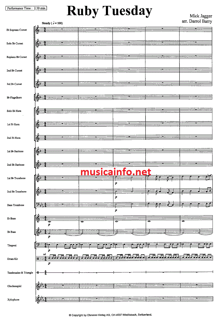 Ruby Tuesday - hier klicken Ruby Tuesday (Brassband), Partitur und Stimmen 82,50