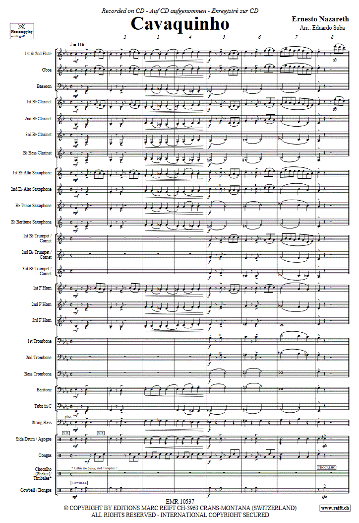 Cavaquinho - hier klicken Cavaquinho (Blasorchester; oder; Fanfarenorchester), Partitur und Stimmen 187,50