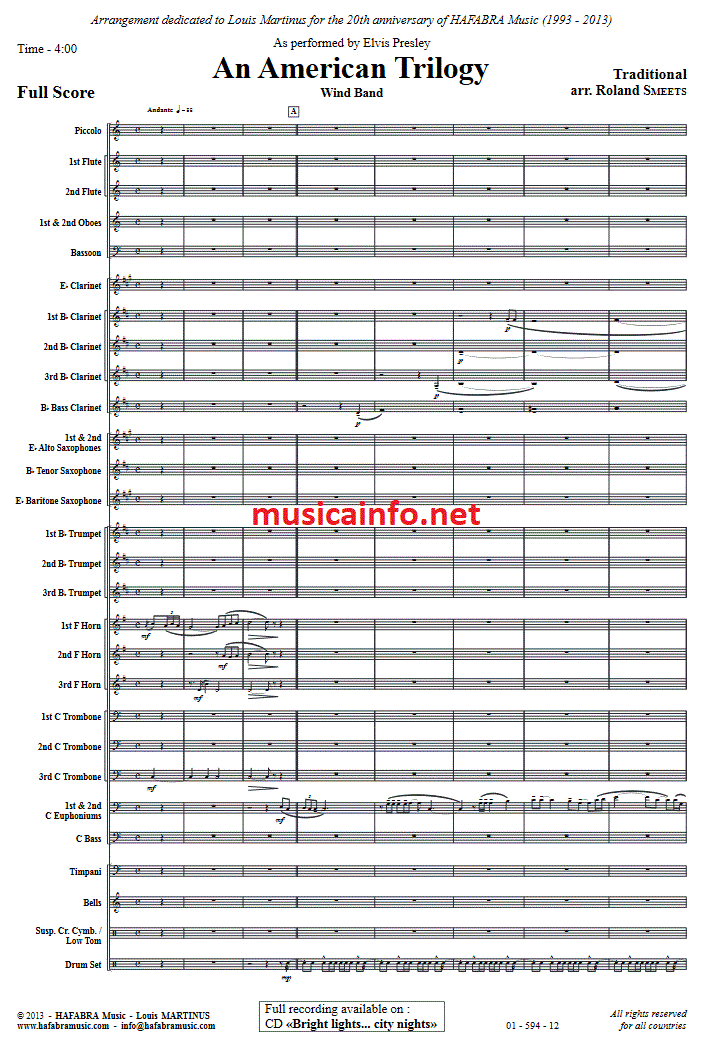 An American Trilogy - hier klicken An American Trilogy (Blasorchester), Partitur und Stimmen 107,80