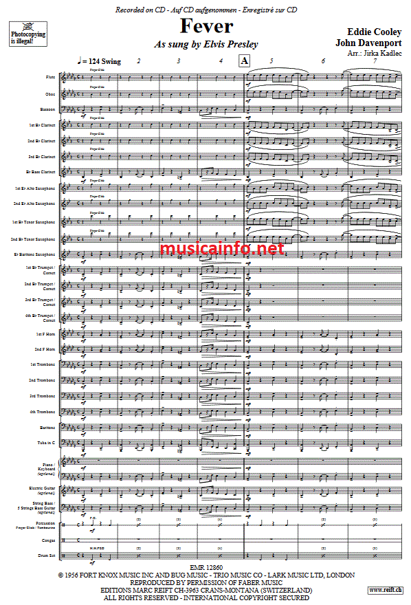 Fever - hier klicken Fever (Blasorchester; oder; Fanfarenorchester), Partitur und Stimmen