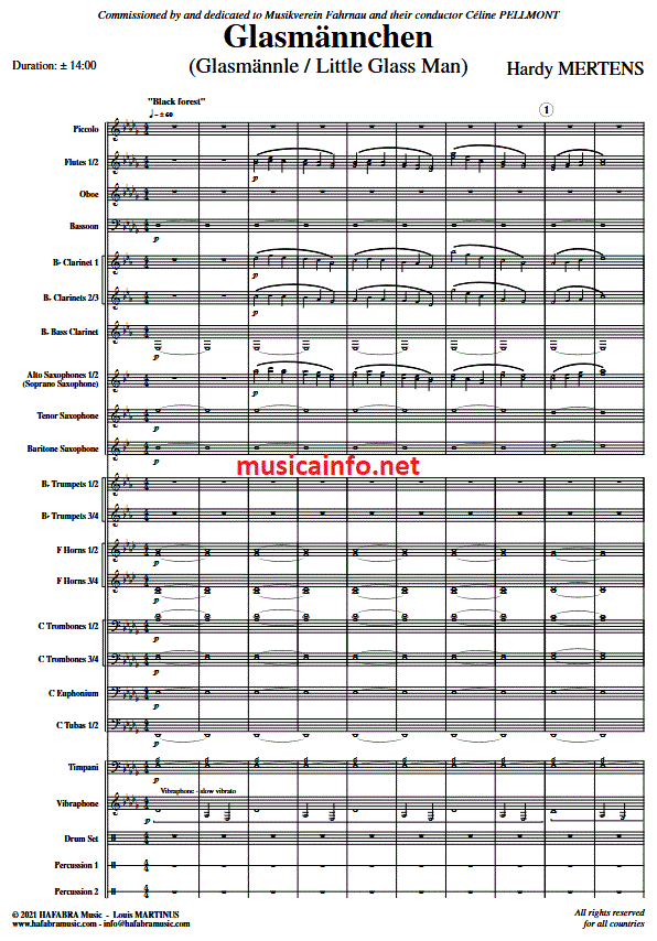 Zusatzinfo/Inhalt „Glasmännchen“ ist ein Auftragswerk des Musikvereins Fahrnau. „Glasmännchen“ ist inspiriert vom Schwarzwaldmärchen von Wilhelm Hauff und Céline Pellmonts Vision von den heilenden Kräften des Regens und der Vogelwelt. Die Uraufführung fand am Samstag, den 26. November 2022 in der Stadthalle Schopfheim statt. Interpreten: Musikverein Fahrnau unter der Leitung von Céline Pellmont. Bitte bereiten Sie sich auf kontrastierende Klangbilder des Schwarzwalds, des Geistes des Glasmännchens und der erfüllten Wünsche der Musiker nach Beständigkeit, Intimität und Freiheit hin zu einem glücklichen Ende vor.....