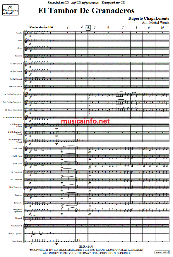 Zusatzinfo/Inhalt Michal Woreks Arrangement von „El Tambor de Granaderos“ stellt eine effektive und zielgerichtete Adaption dar, die das Originalwerk respektvoll interpretiert und gleichzeitig den Bedürfnissen von Mittelstufenblasorchestern gerecht wird. Dieses Arrangement ist somit eine überzeugende Empfehlung für Dirigenten und Musiker, die ihr Konzertprogramm mit einem klangvollen und historisch bedeutsamen Stück bereichern möchten.