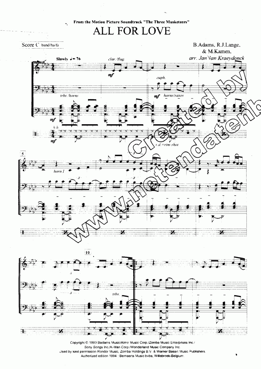 All for Love (The 3 Musketeers) - hier klicken All for Love (The 3 Musketeers) (Brassband), Partitur und Stimmen