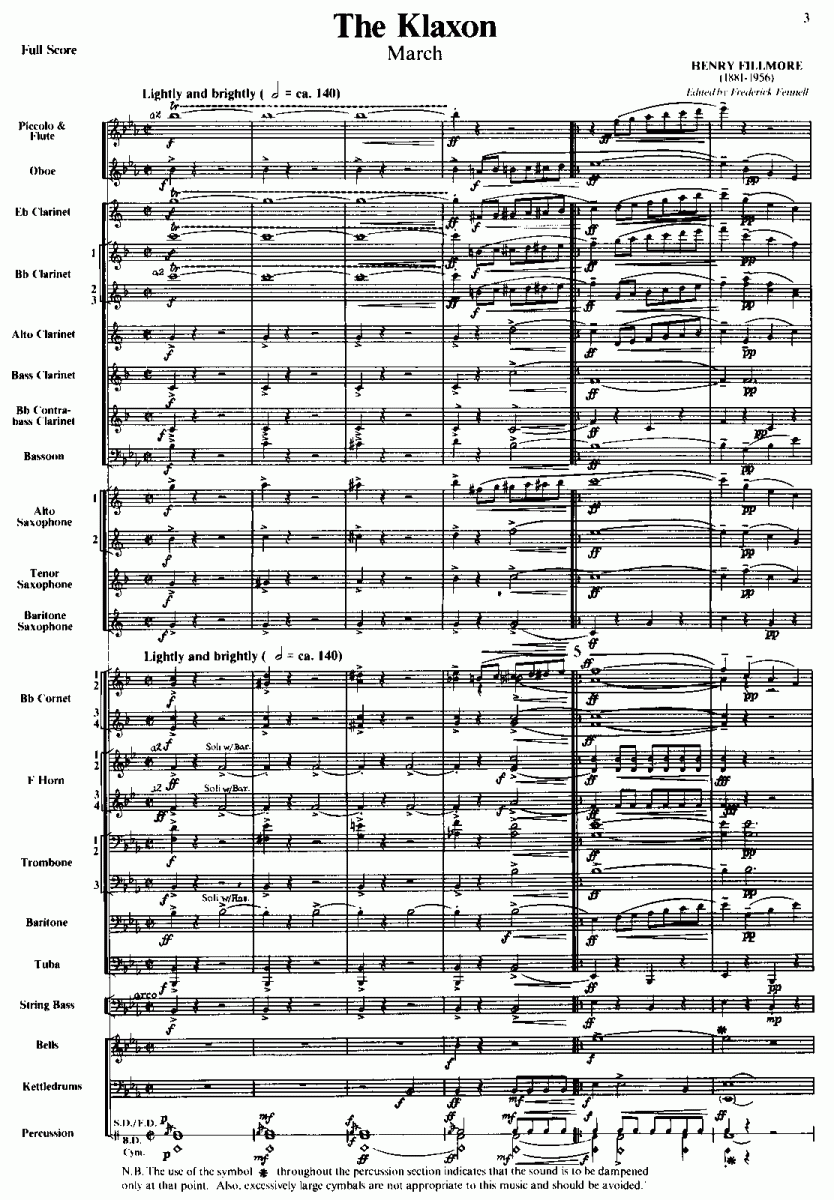Zusatzinfo/Inhalt Um mit seinem Orchester die Ausstellung der Cincinnati Automobile Show gebührend eröffnen zu können, nahm der Komponist im Januar 1930 die Gelegenheit wahr, einen passenden Marsch mit dem Titel 'The Klaxon' ('Die Hupe') zu komponieren. Es wurde ein ungewöhnlicher, eben ein typischer Fillmore-Marsch.
