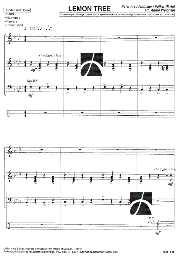 Lemon Tree - hier klicken Lemon Tree (Blasorchester; oder; Fanfarenorchester), Direktionsstimme und Stimmen 99,99