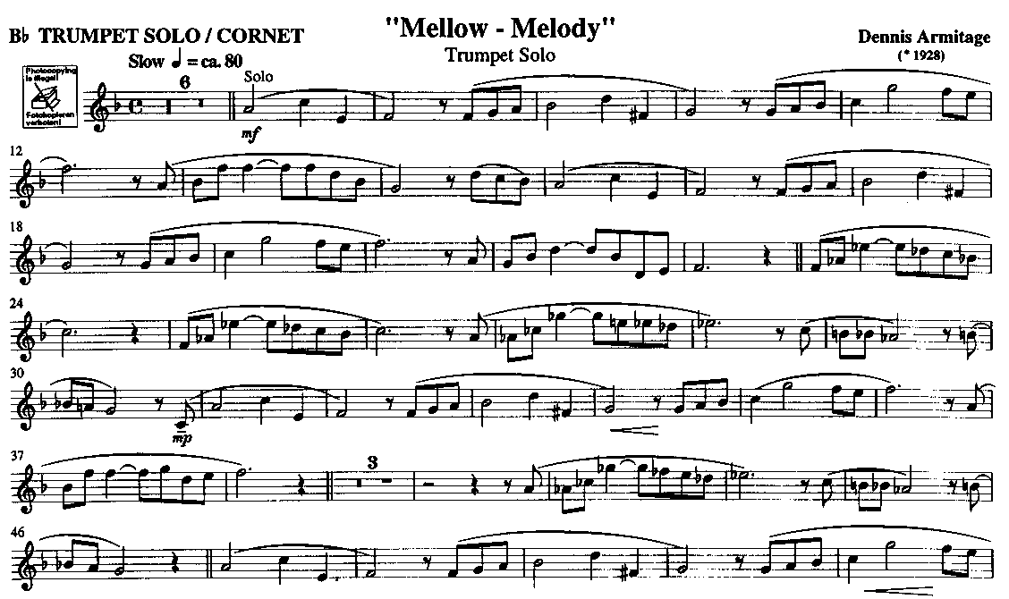 Mellow-Melody - hier klicken Mellow-Melody (Blasorchester; Trompete in Bb), Direktionsstimme und Stimmen 110,68