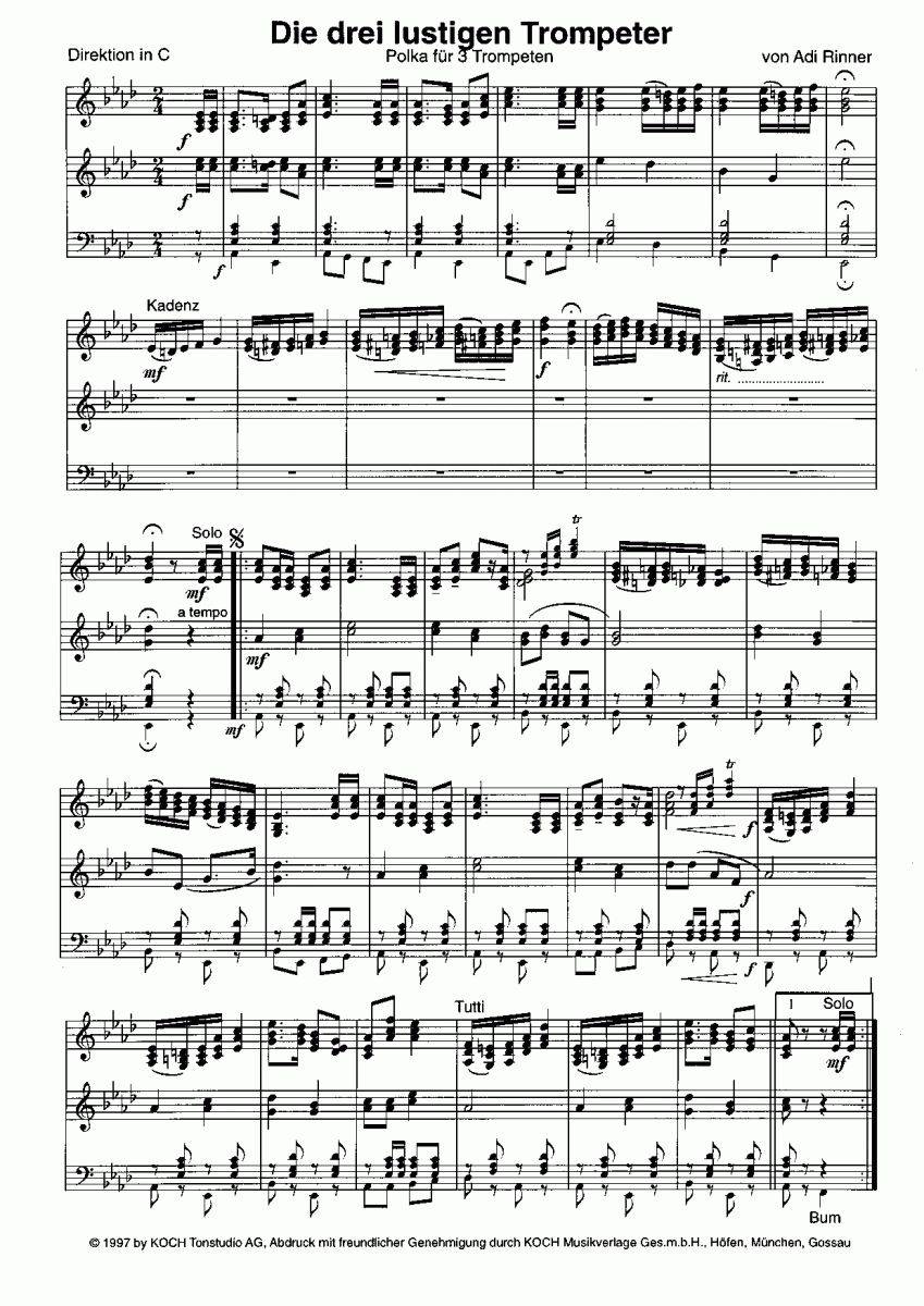 Die 3 lustigen Trompeter (Drei) - Notenbeispiel